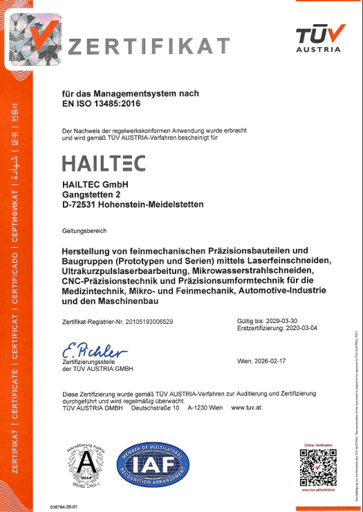 Hier können Sie unser DIN EN ISO 13485 Zertifikat herunterladen